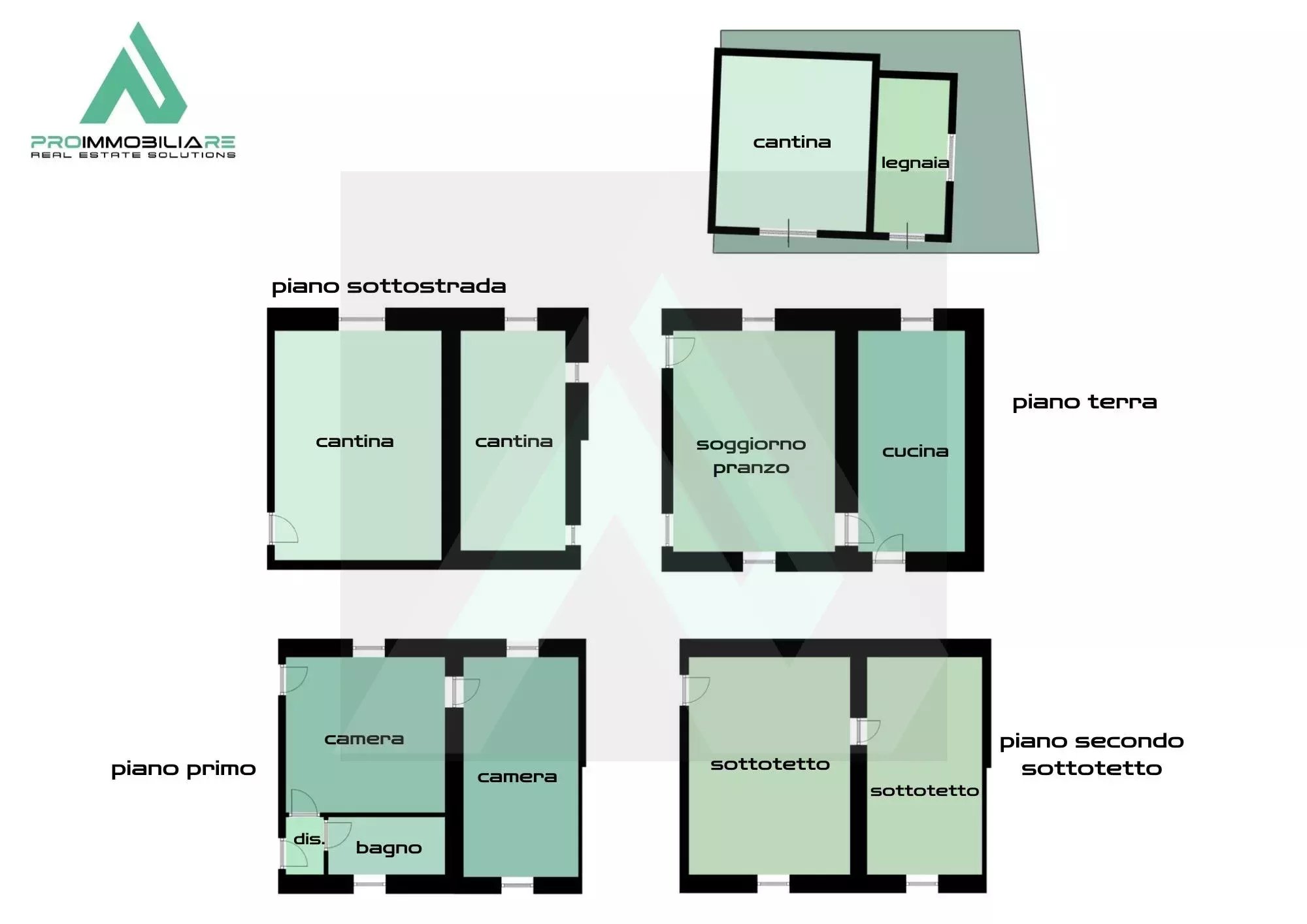 Il secondo piano ospita un sottotetto con altezza massima di 2 metri, ideale come ripostiglio o spazio multifunzione.